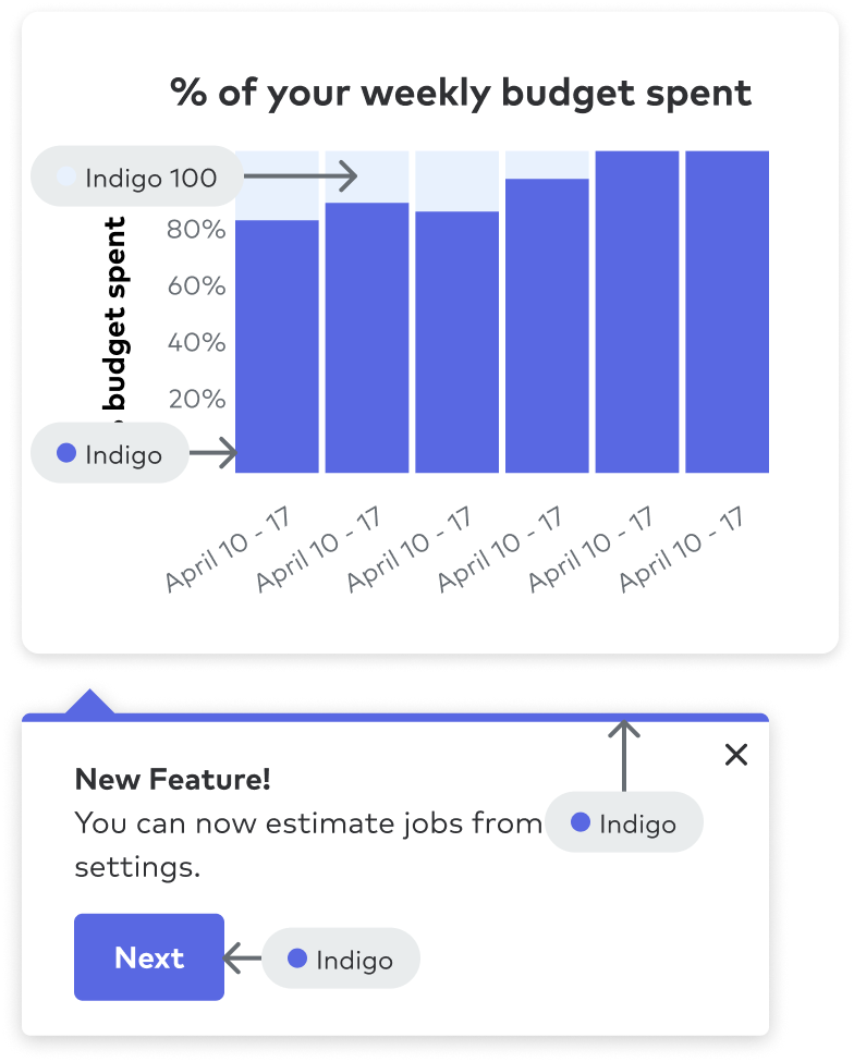 - Icon color guidance on 100-level indigo surfaces or paired with text of same color value
