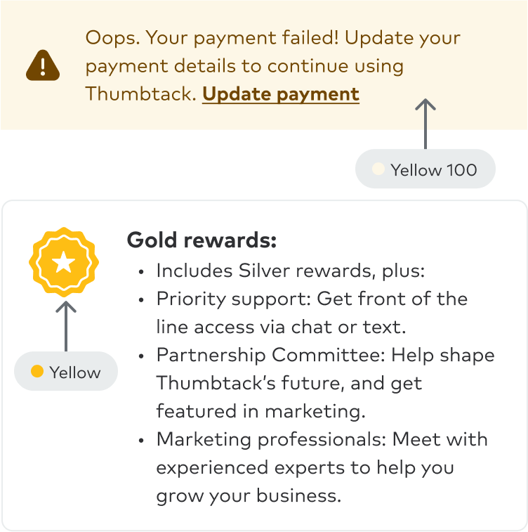 Feedback with a subtle sense of caution. Commonly used in alerts and toasts.